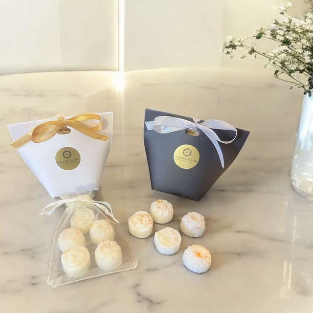 5 beautifully fragranced and individually poured Flower shaped wax melts.