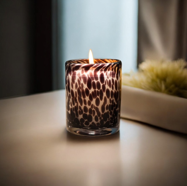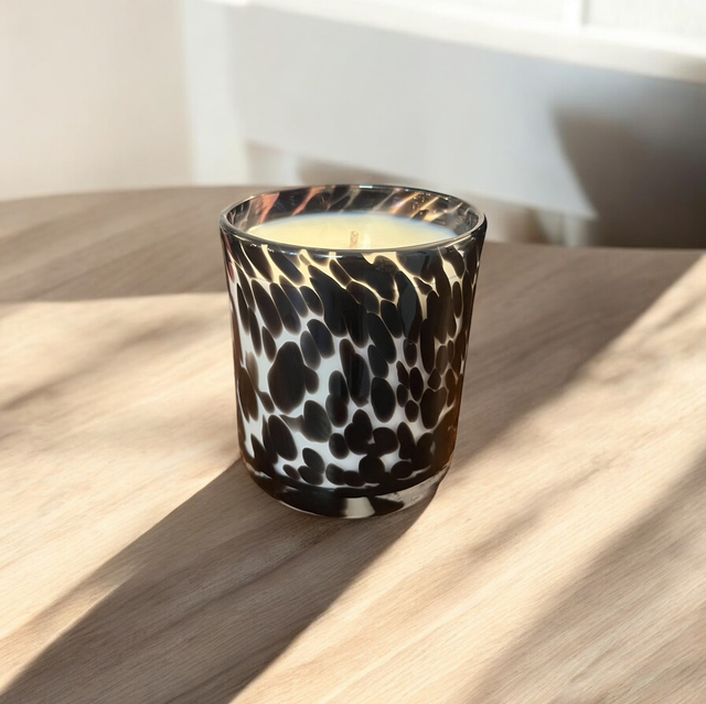 Limited Edition Black & White Leopard Print Glass Candle 230g
