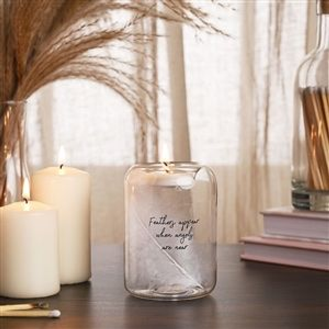 Memory Feather & Glass Tea Light Burner