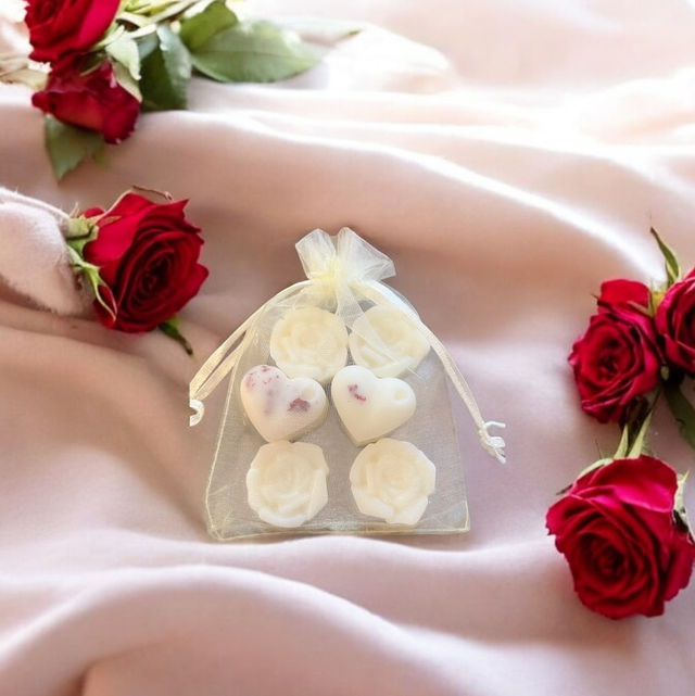 6 beautifully fragranced and individually poured Heart & Flower shaped wax melts.
