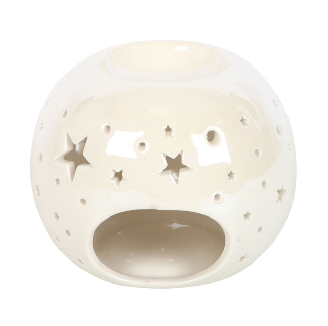 White Iridescent Star Tea Light Burner